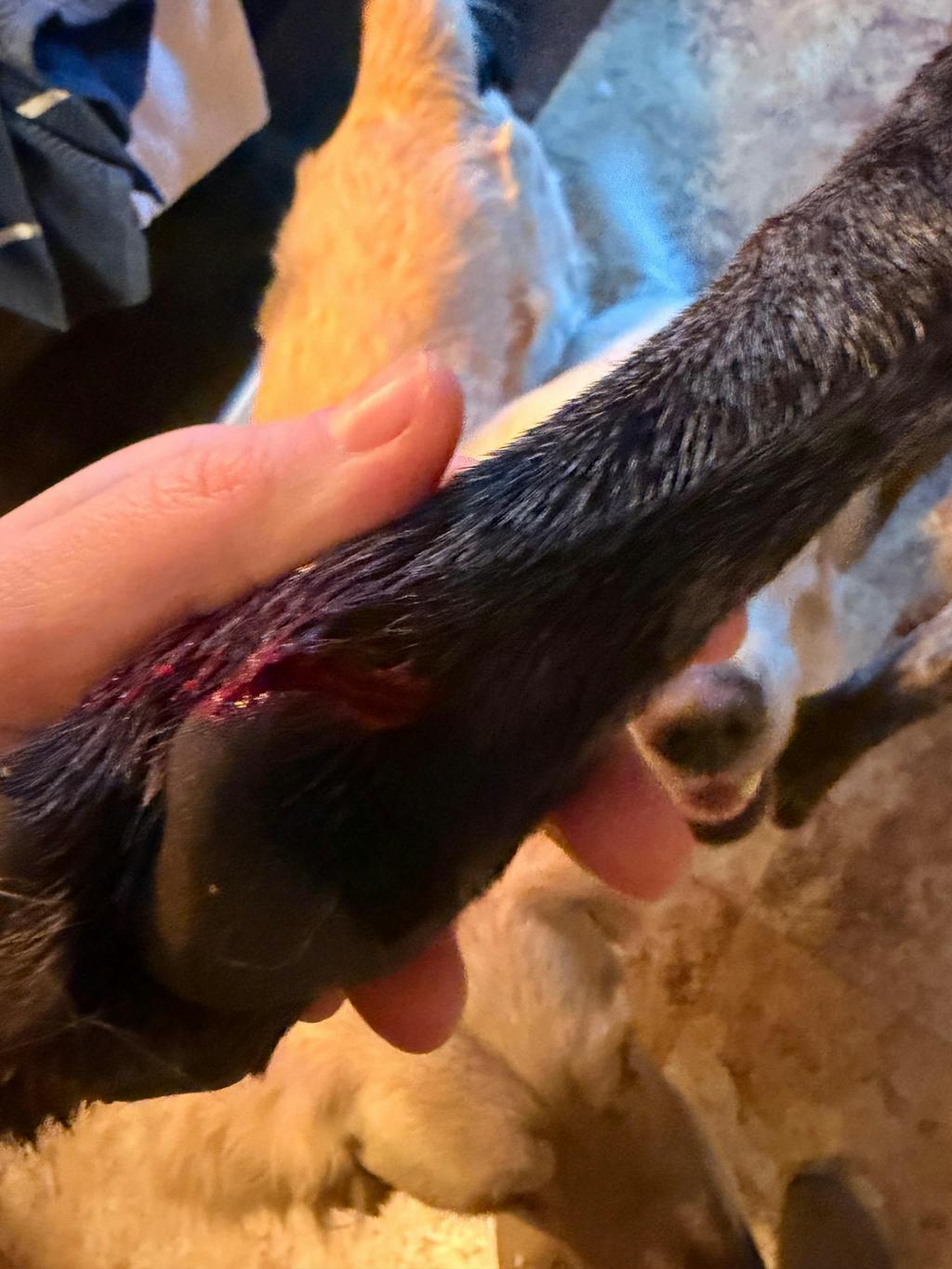 my dog cut her leg in a tough area (initial picture), my pup did get stitches immediately but due to the location the stitches popped within 48 hours. The wound remained open, we applied the Salve twice day and wrapped her paw, now 2 weeks later it is now completely healed.